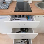 Mejora tu estancia con la pequeña cocina del Partizanu Studio Apartment #3 By Polo Apartments, amueblada con tetera, nevera y tostadora para tu comodidad. La parada de autobús más cercana a este apartamento es Grazinos g, a unos 5 minutos a pie.